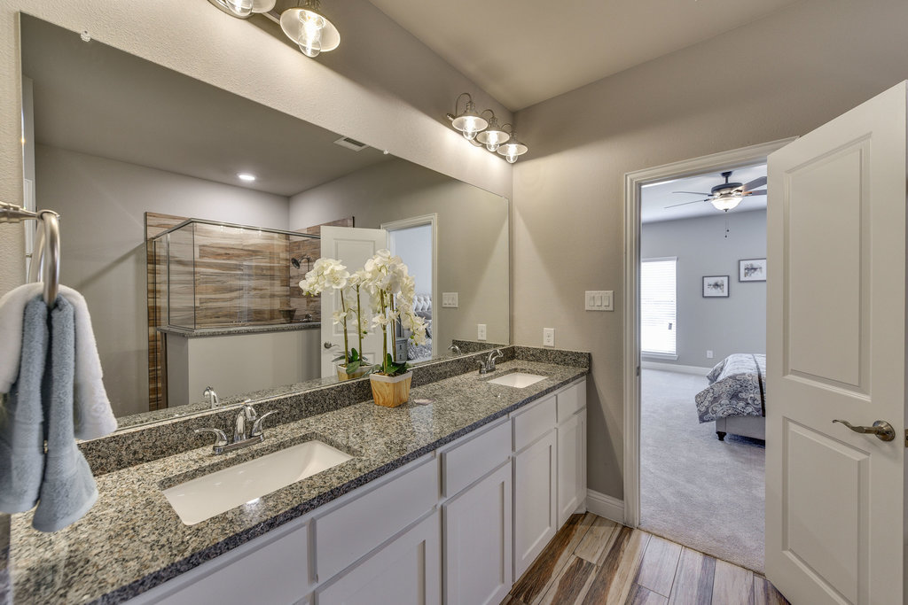 Luxurious family living. The Pecan’s inviting covered entry and foyer flowing into the expansive dining room and great room 10 foot ceiling. The well-designed kitchen is equipped with a large center island, plenty of counter and cabinet space, and sizable walk-in pantry. The private master bedroom is enhanced by an elegant ceiling with crown molding , gigantic walk-in closet, and spa-like master bath with dual-sink vanity, luxe glass-enclosed shower, linen storage, and private water closet. Also featuring a 2nd Master with dedicated full bathroom giving you options of multigenerational living. Generous large size secondary bedrooms feature ample closets and shared access to a full bath with vanity and linen storage. Additional highlights include centrally located laundry with access from the Master bed room , flowing from garage to mud room .